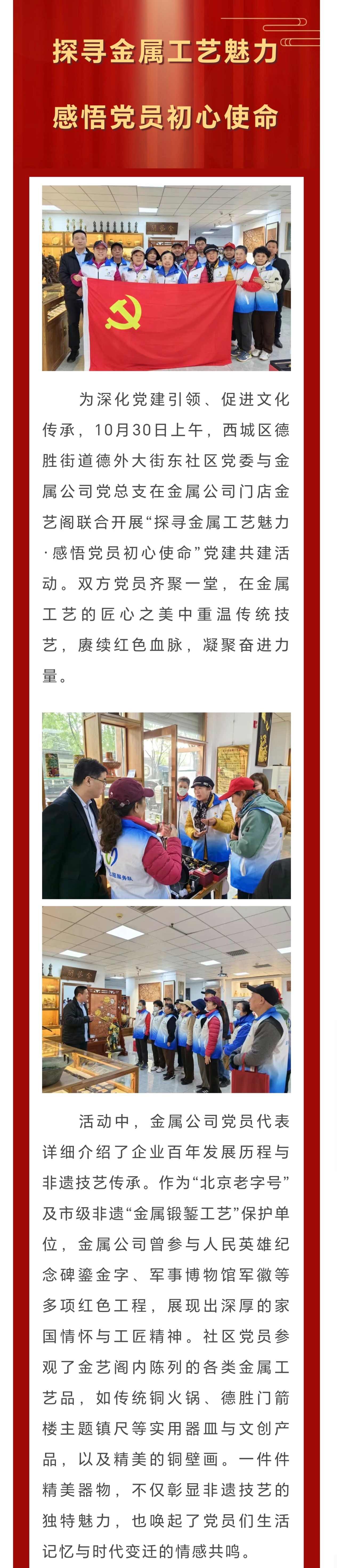 探尋金屬工藝魅力·感悟黨員初心使命——德外大街東社區黨委與金屬公司黨總支開展黨建共建活動