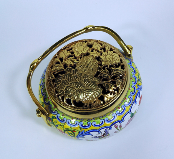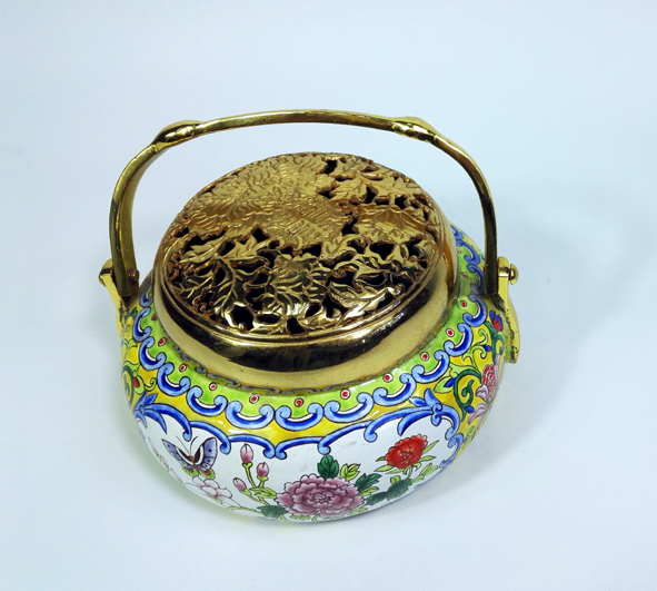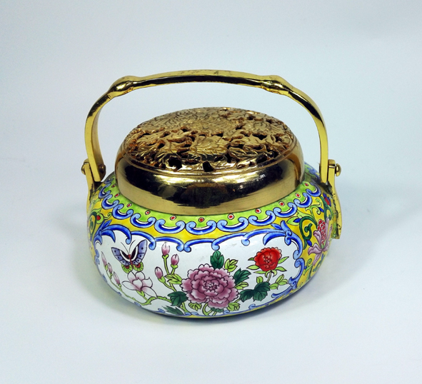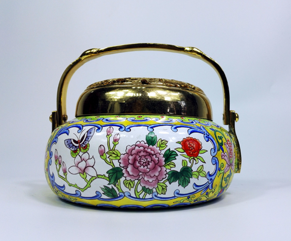 銅胎畫琺瑯,又稱“洋瓷”,與景泰藍同為中國傳統(tǒng)琺瑯工藝的兩大瑰寶,享譽中外。此件畫琺瑯暖手爐專為新版紅樓夢劇組定制,是賈母手持之物。