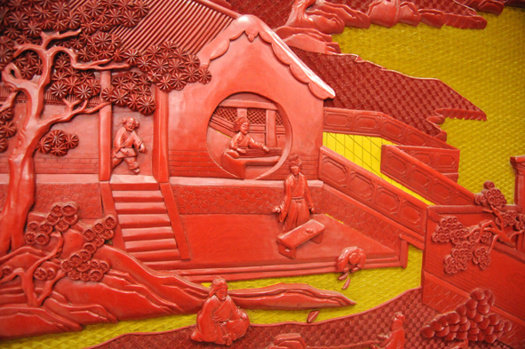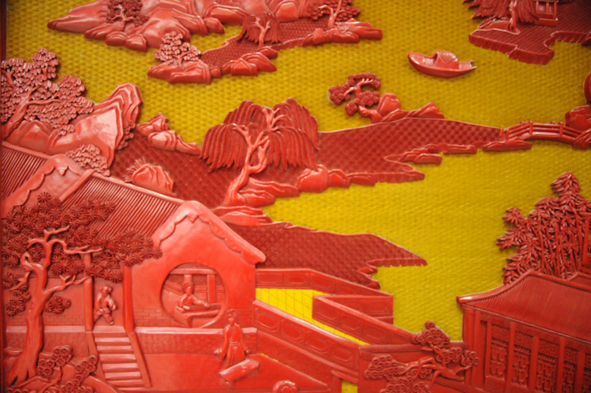 雕漆屏風曲水流觴(楊之新大師作品)