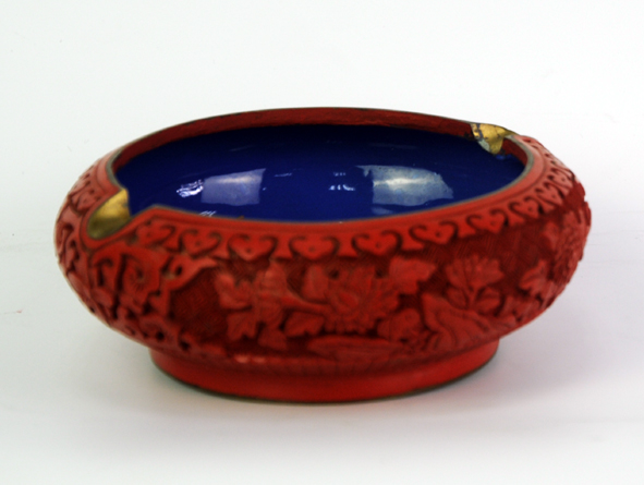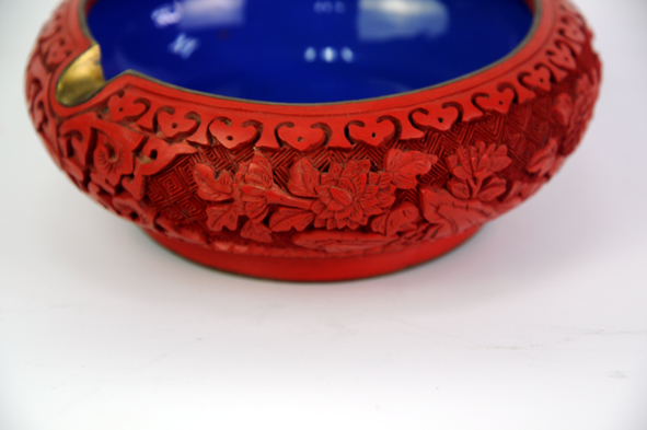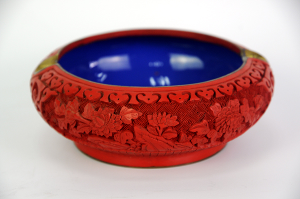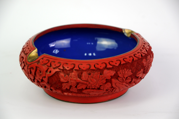洗子為銅胎,胎上雕漆。洗子是洗毛筆之用,也叫筆洗,古代文人必備之物。